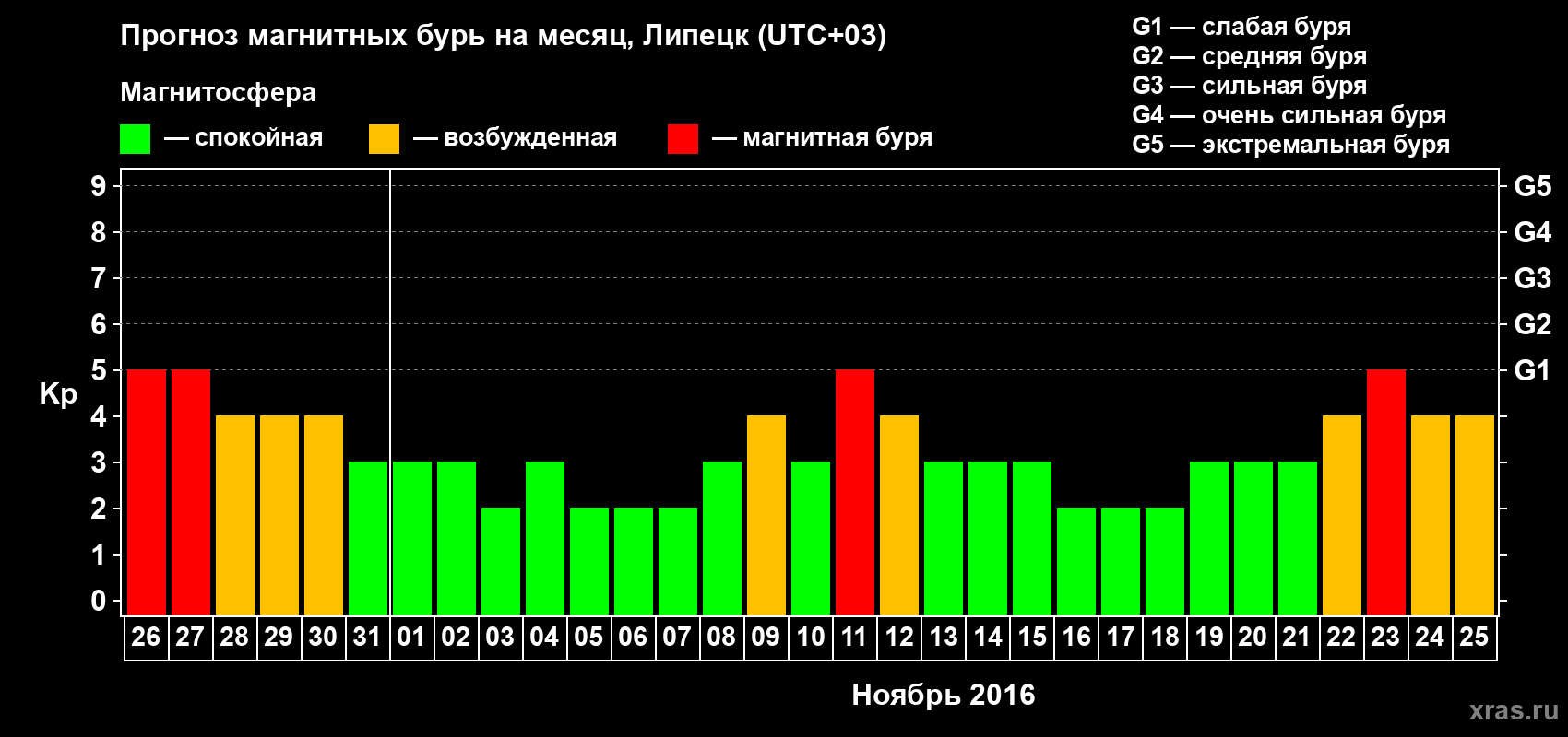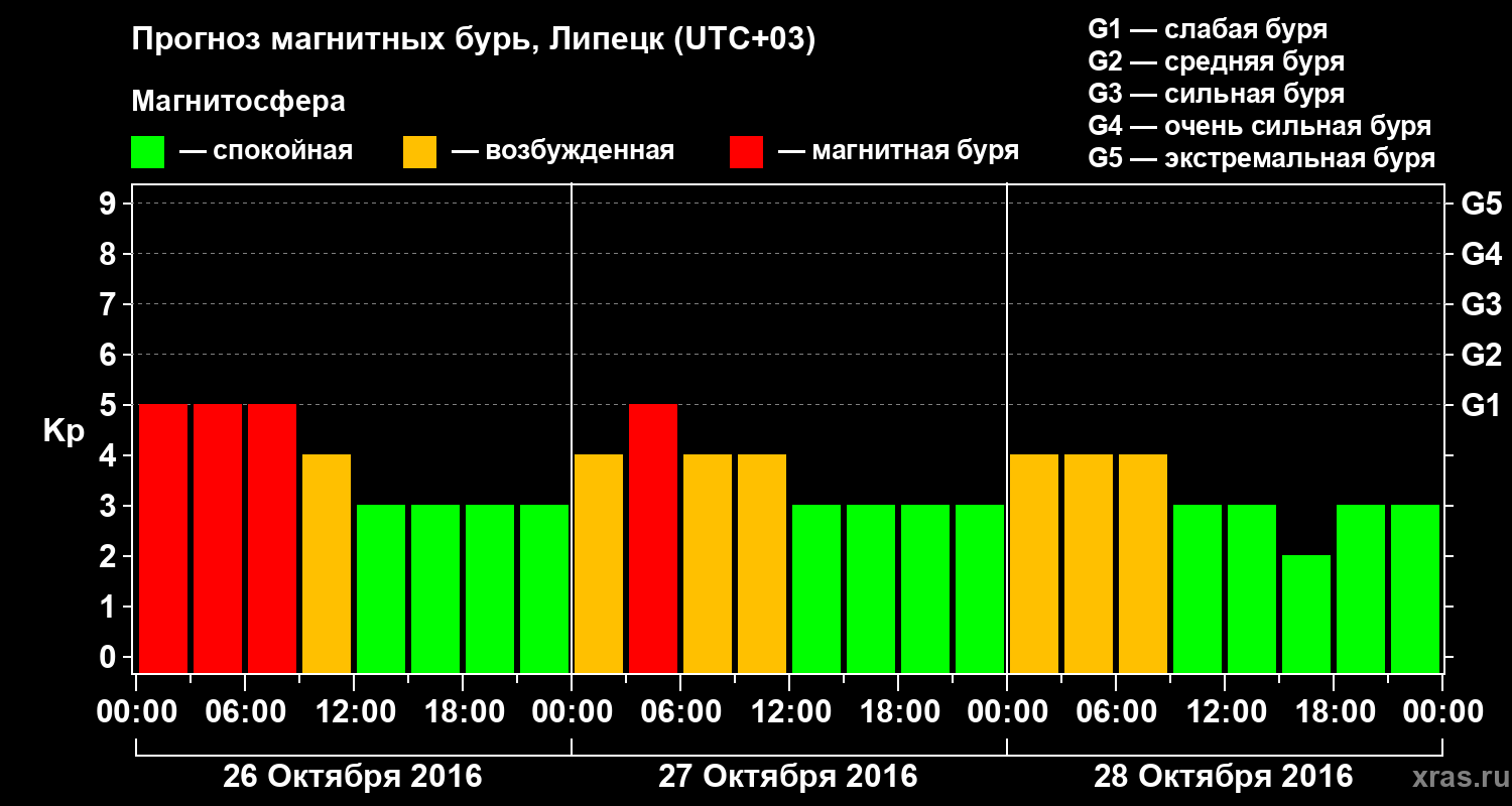 Прогноз магнитных бурь в Липецке — 26 октября 2016 года
