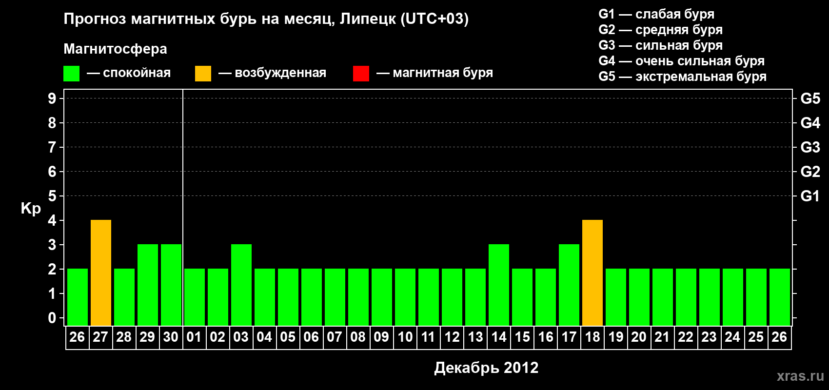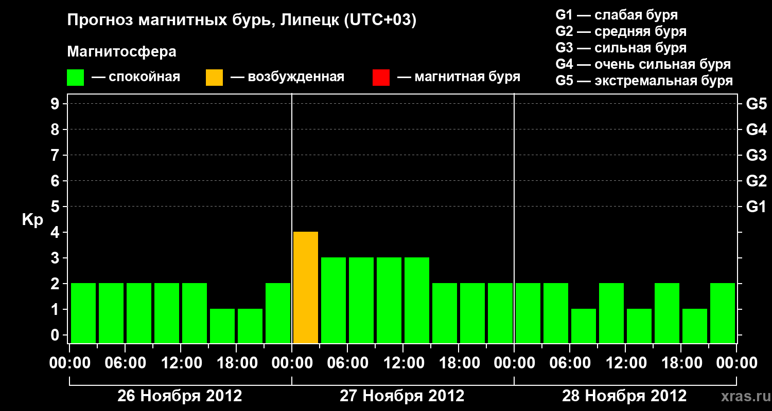 Прогноз магнитных бурь в Липецке — 26 ноября 2012 года