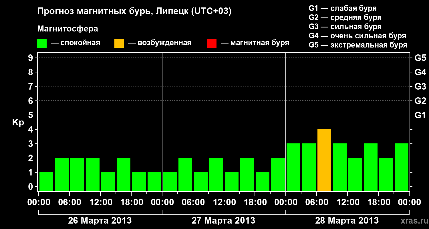 Прогноз магнитных бурь в Липецке — 26 марта 2013 года