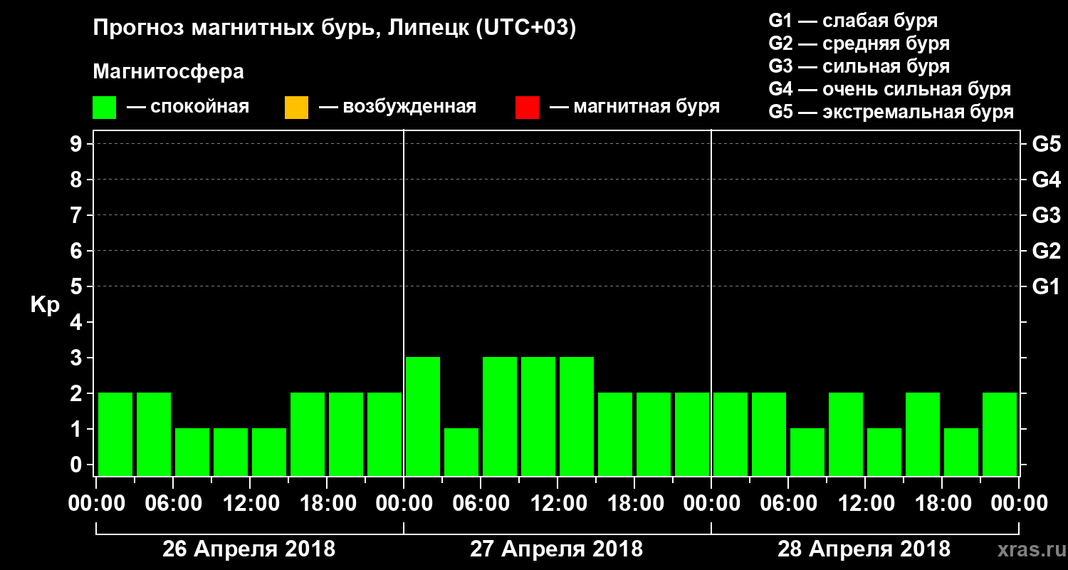 Прогноз магнитных бурь в Липецке на 26 апреля 2018 года