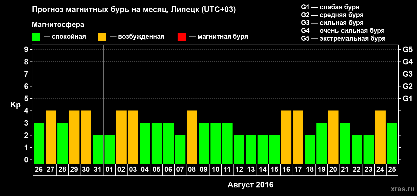 Прогноз магнитных бурь в Липецке — 26 июля 2016 года