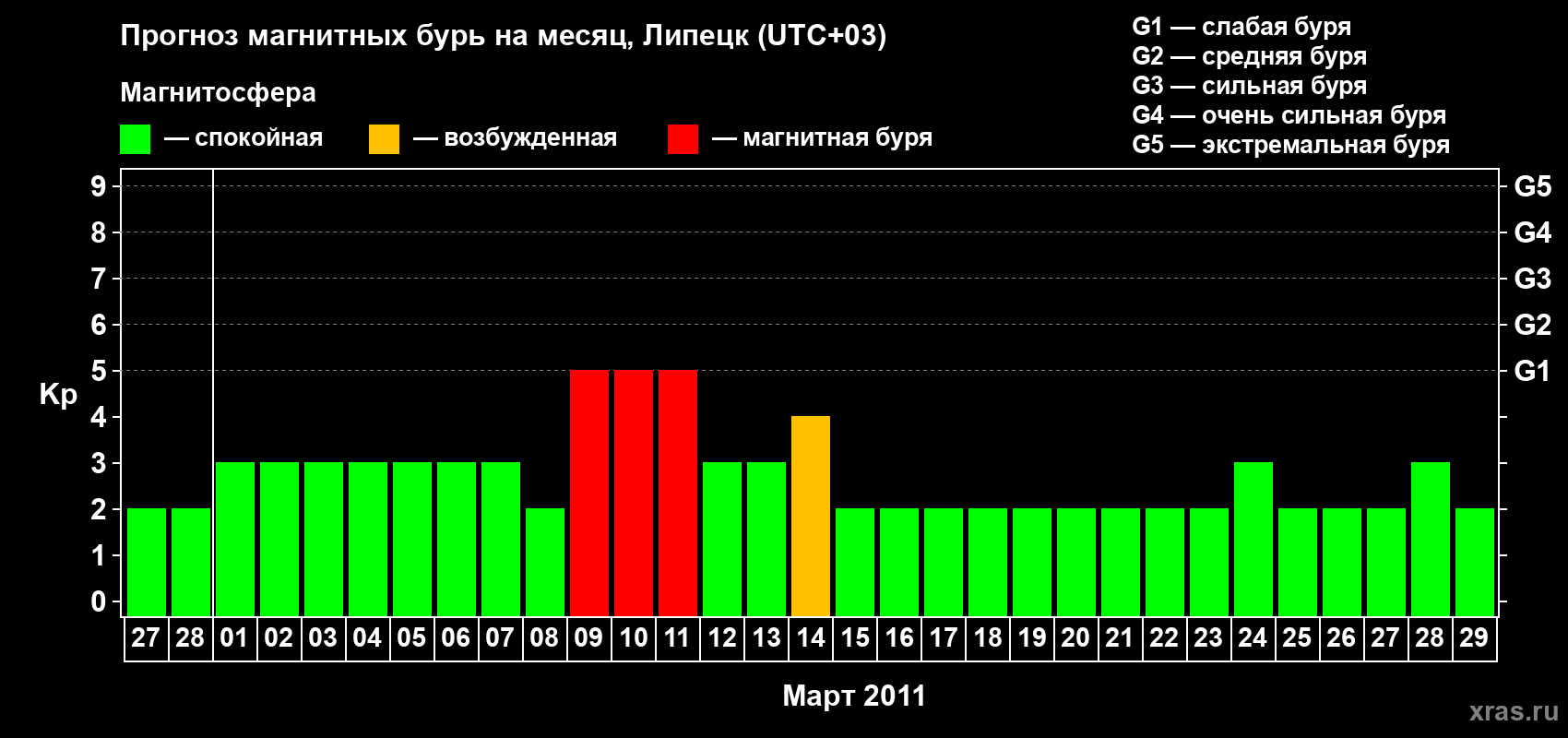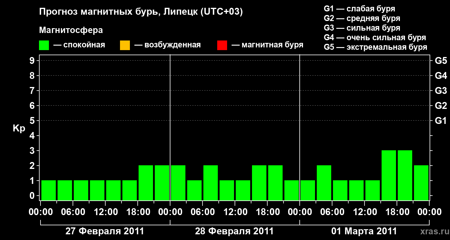 Прогноз магнитных бурь в Липецке — 27 февраля 2011 года