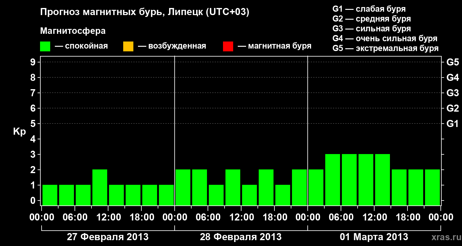 Прогноз магнитных бурь в Липецке на 27 февраля 2013 года