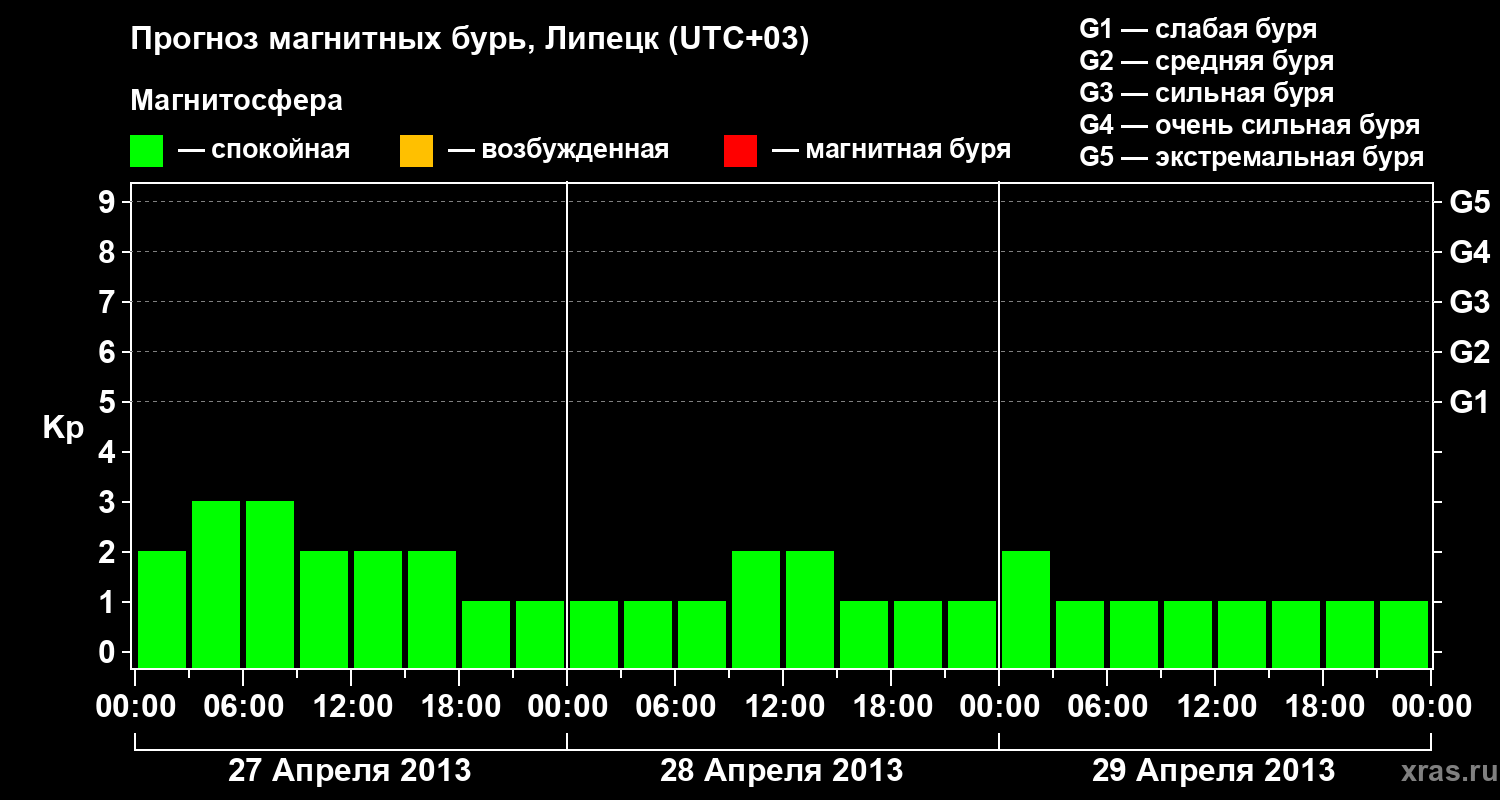 Прогноз магнитных бурь в Липецке на 27 апреля 2013 года