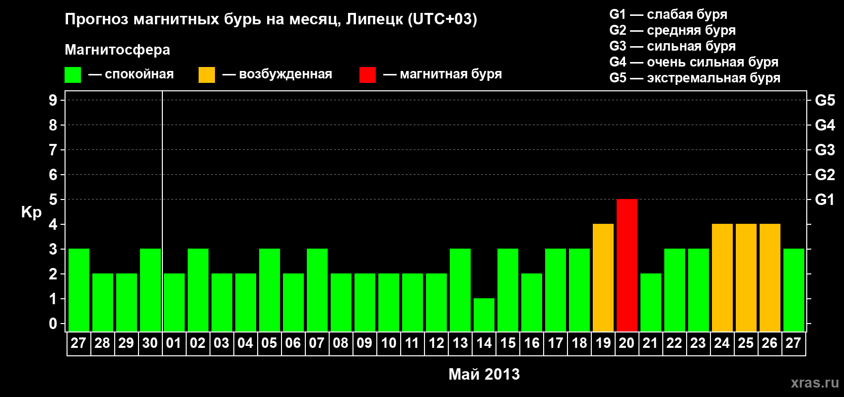 Прогноз магнитных бурь в Липецке — 27 апреля 2013 года