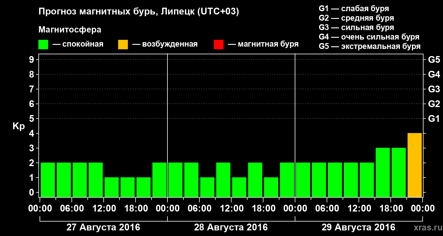 Прогноз магнитных бурь в Липецке на 27 августа 2016 года