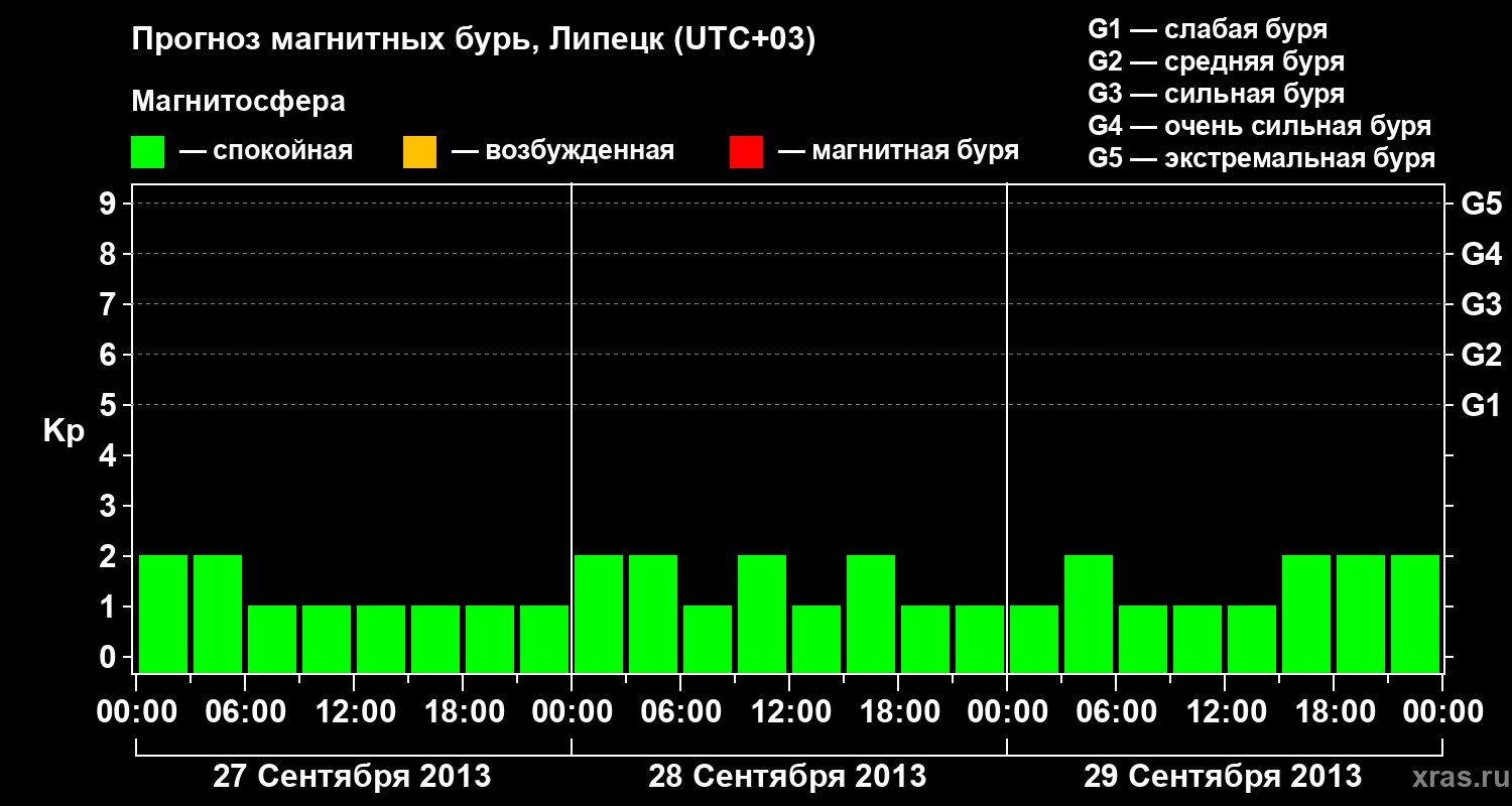 Прогноз магнитных бурь в Липецке — 27 сентября 2013 года