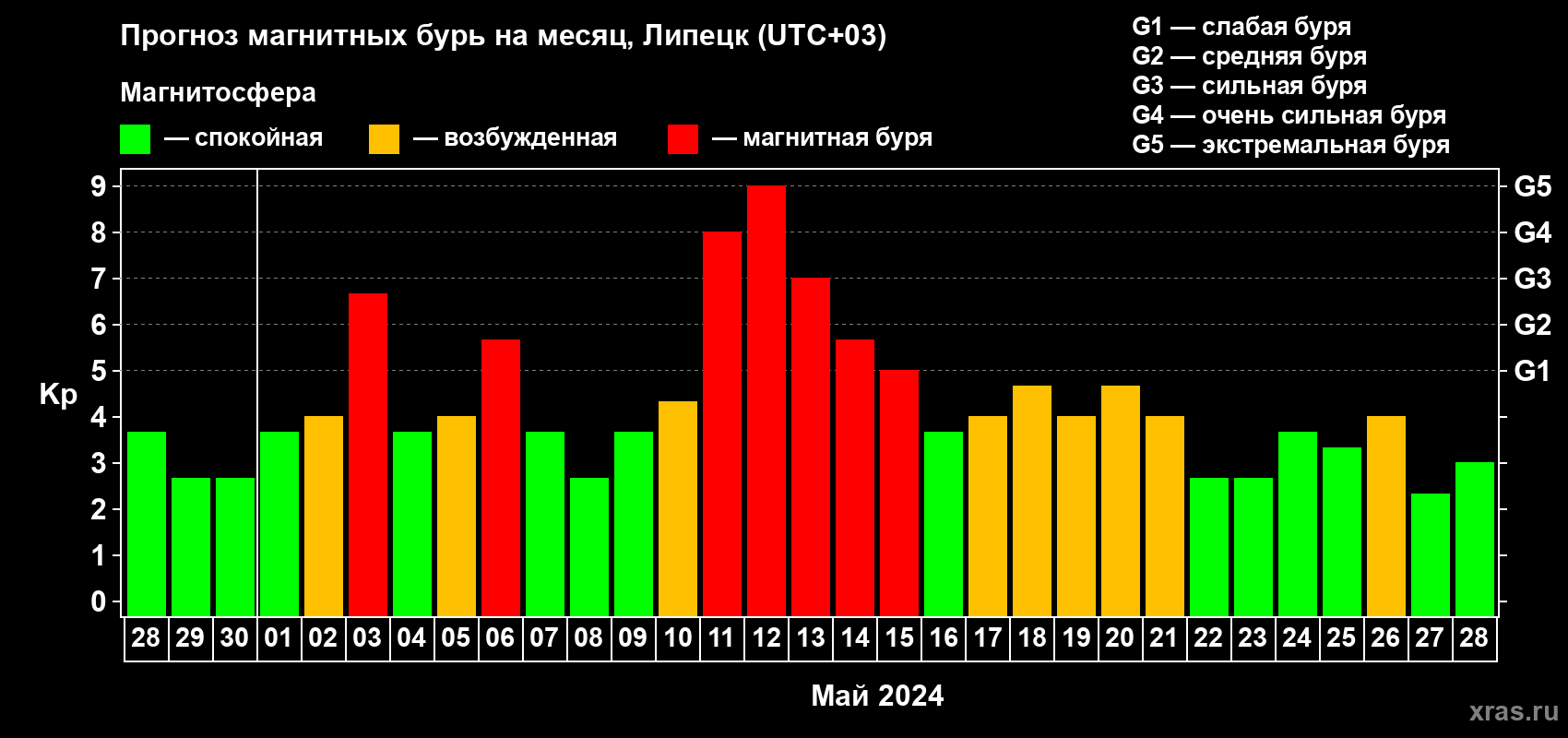 Прогноз магнитных бурь в Липецке — 28 апреля 2024 года
