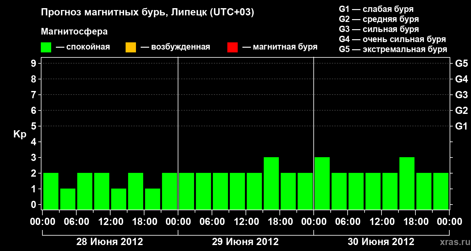 Прогноз магнитных бурь в Липецке — 28 июня 2012 года