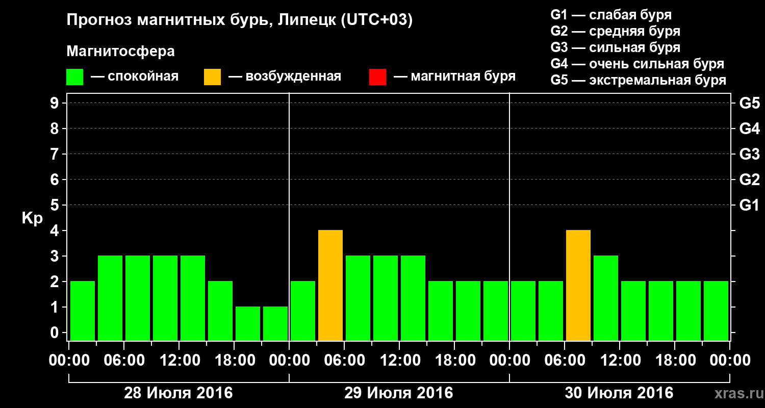 Прогноз магнитных бурь в Липецке на 28 июля 2016 года