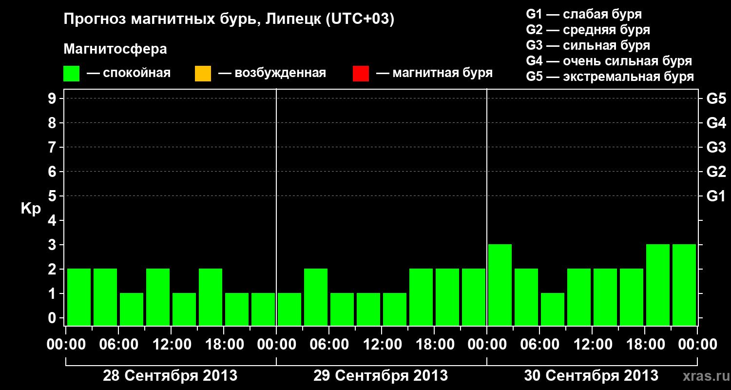 Прогноз магнитных бурь в Липецке — 28 сентября 2013 года