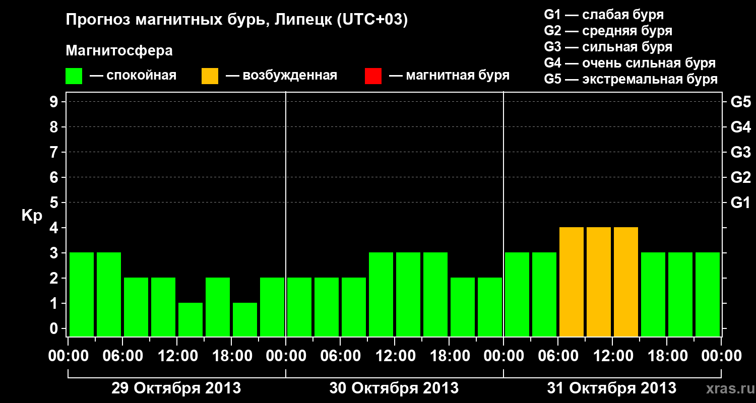 Прогноз магнитных бурь в Липецке на 29 октября 2013 года