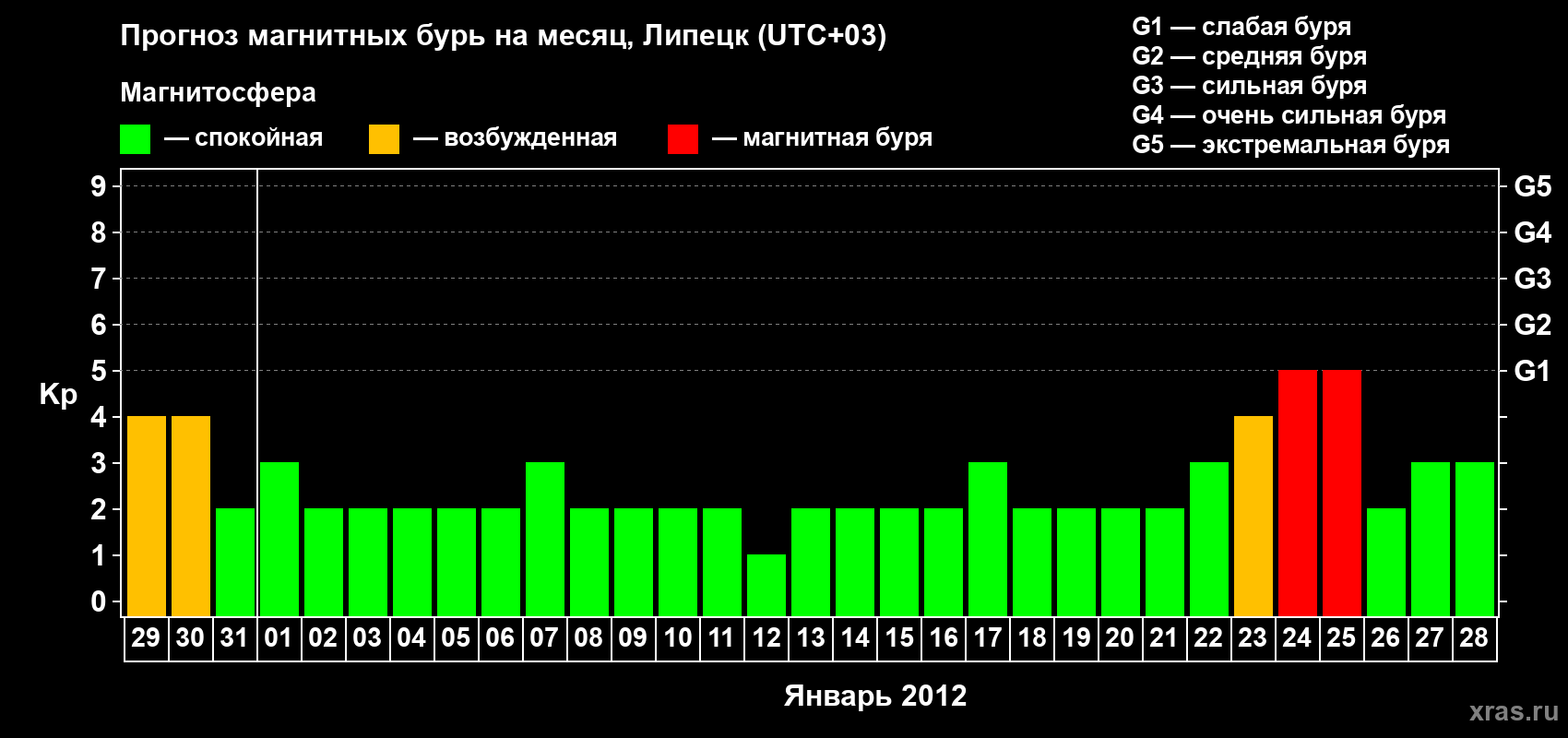 Прогноз магнитных бурь в Липецке — 29 декабря 2011 года