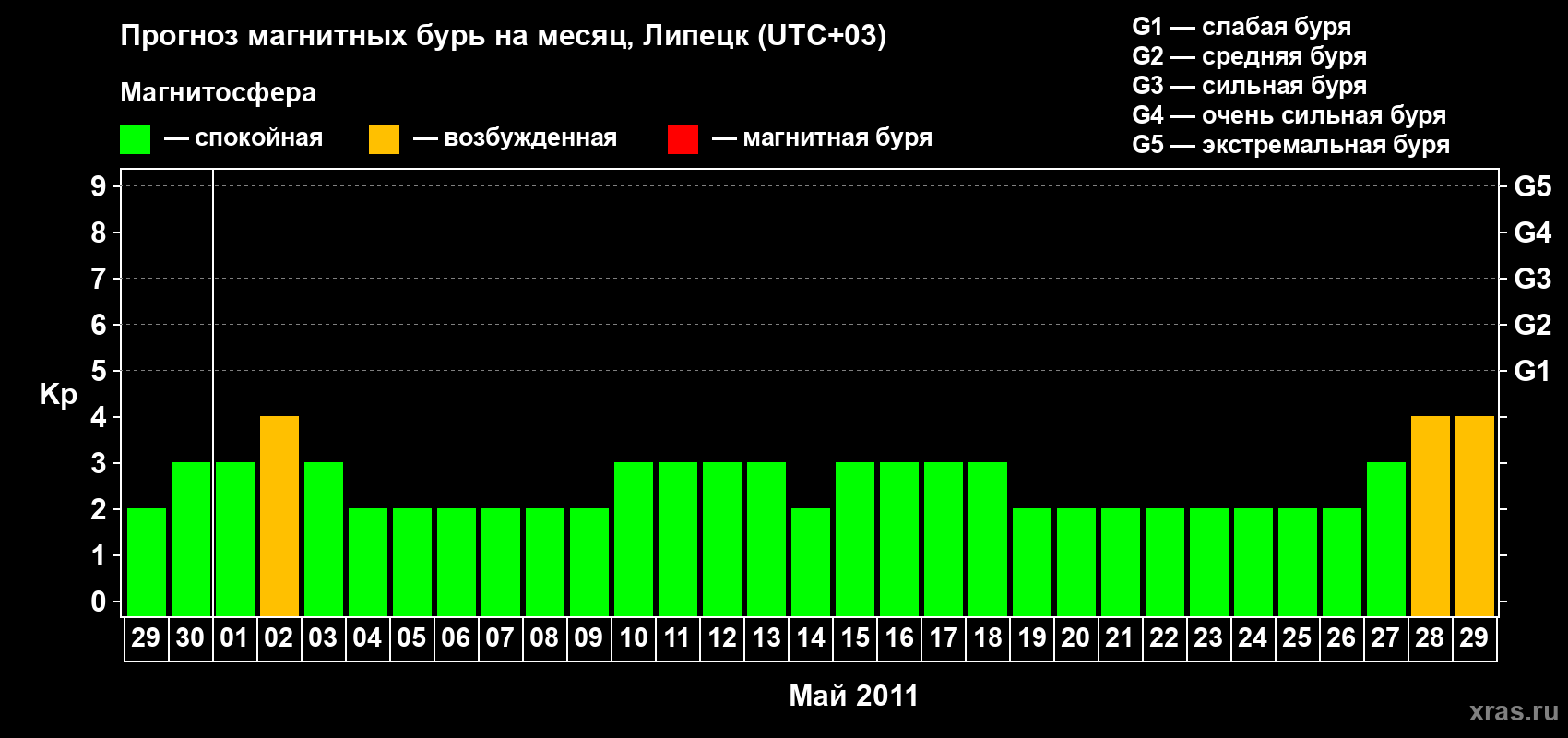 Прогноз магнитных бурь в Липецке — 29 апреля 2011 года