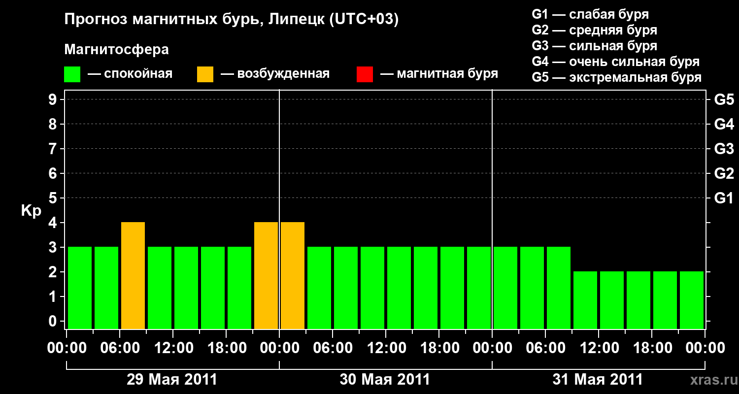 Прогноз магнитных бурь в Липецке — 29 мая 2011 года