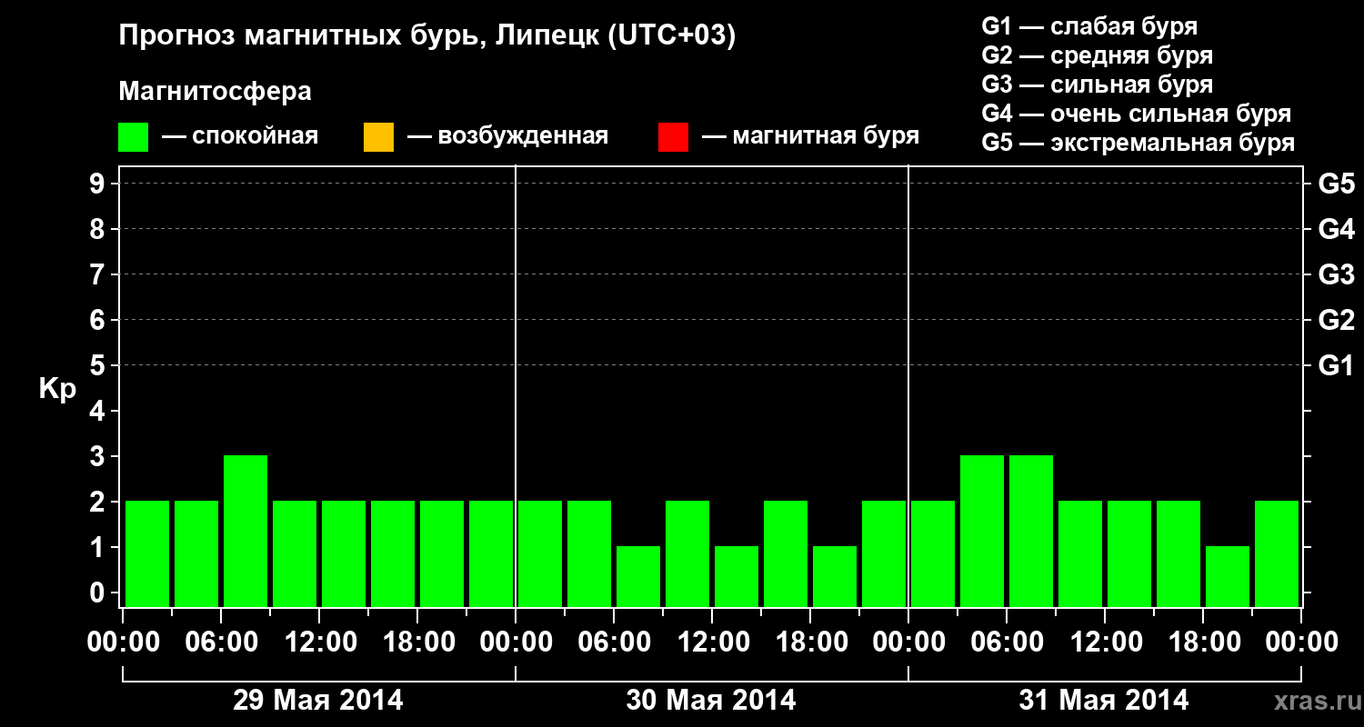 Прогноз магнитных бурь в Липецке — 29 мая 2014 года