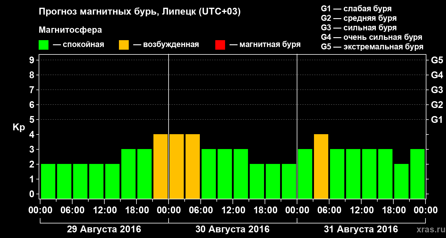 Прогноз магнитных бурь в Липецке на 29 августа 2016 года