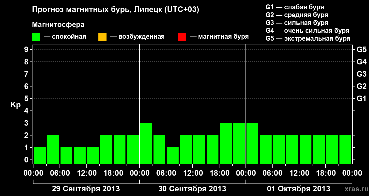 Прогноз магнитных бурь в Липецке — 29 сентября 2013 года
