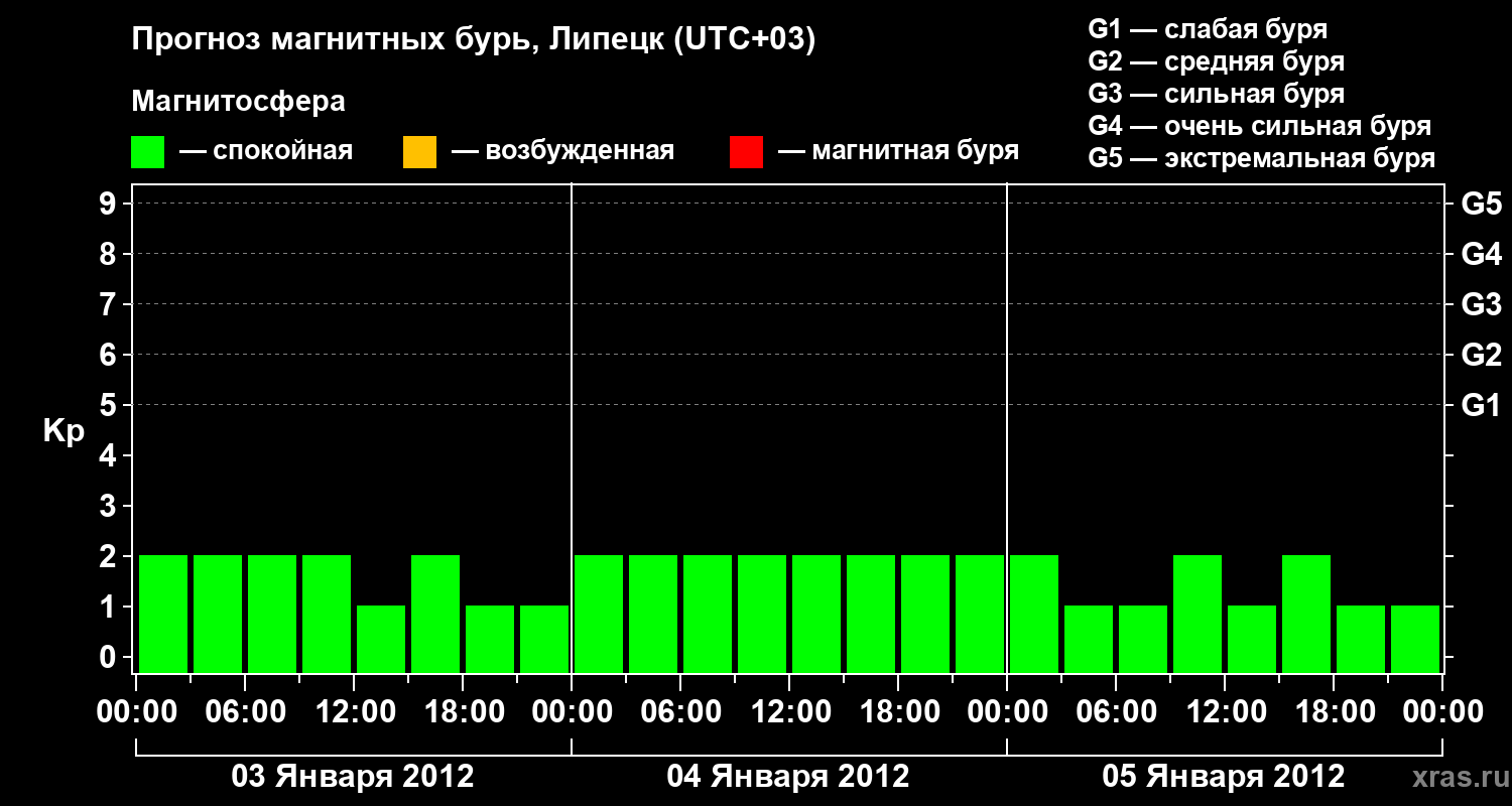 Прогноз магнитных бурь в Липецке — 3 января 2012 года