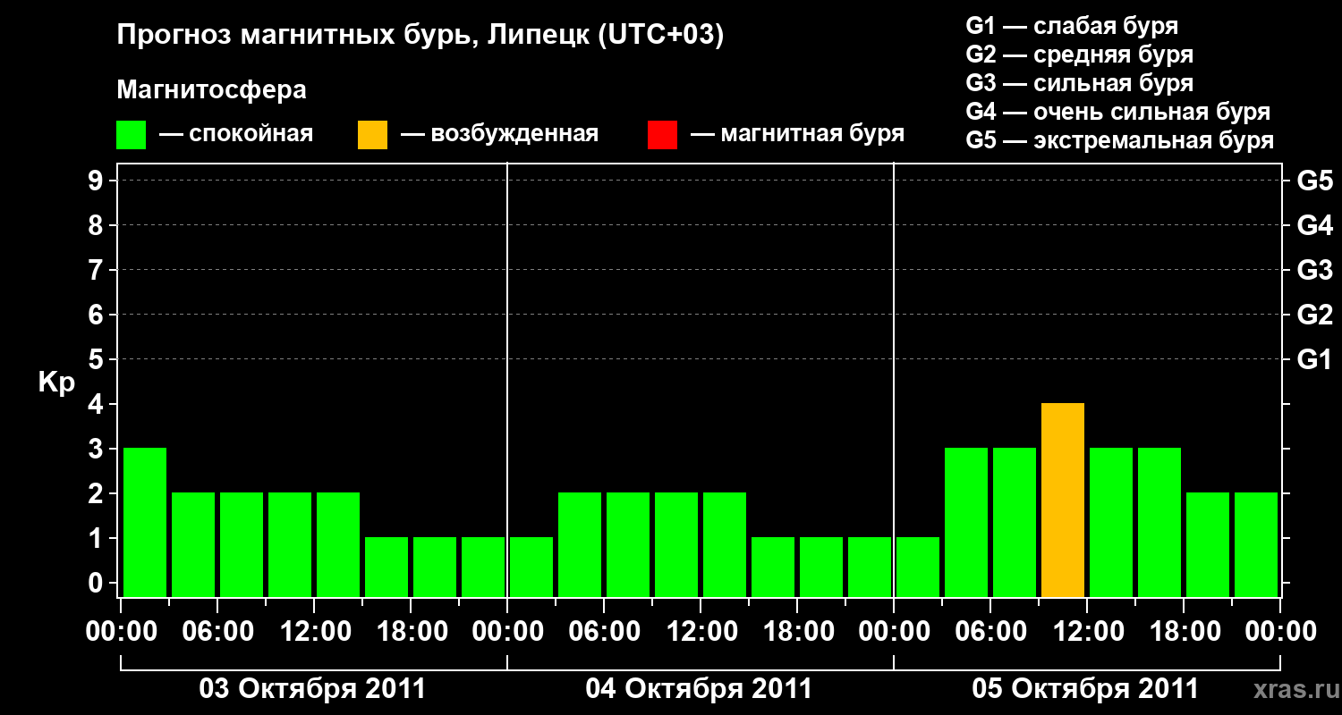 Прогноз магнитных бурь в Липецке на 3 октября 2011 года