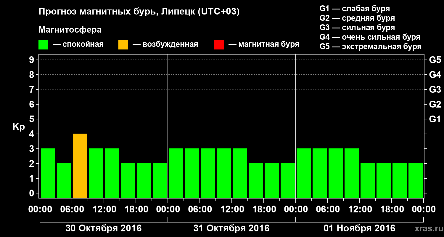 Прогноз магнитных бурь в Липецке на 30 октября 2016 года