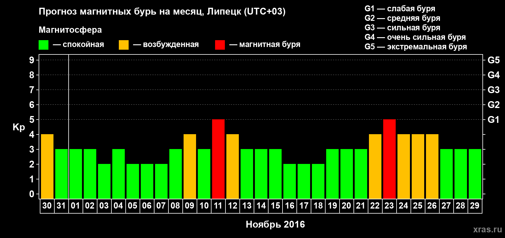 Прогноз магнитных бурь в Липецке — 30 октября 2016 года