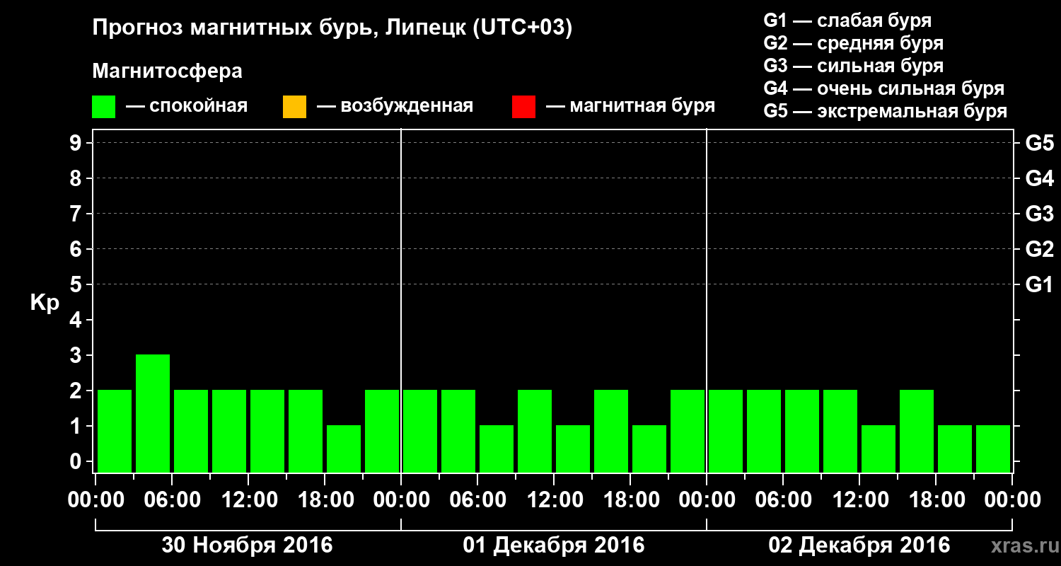 Прогноз магнитных бурь в Липецке — 30 ноября 2016 года