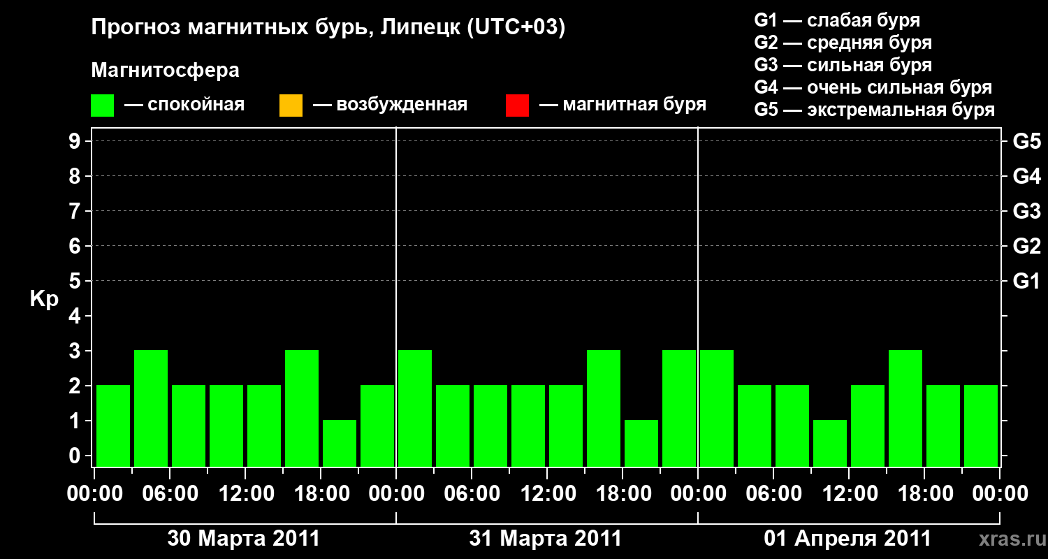 Прогноз магнитных бурь в Липецке — 30 марта 2011 года