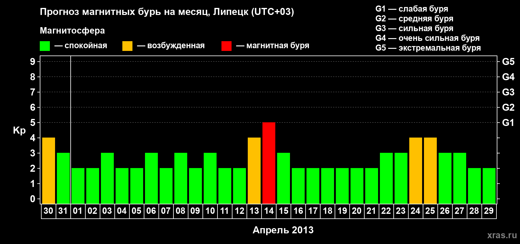 Прогноз магнитных бурь в Липецке — 30 марта 2013 года