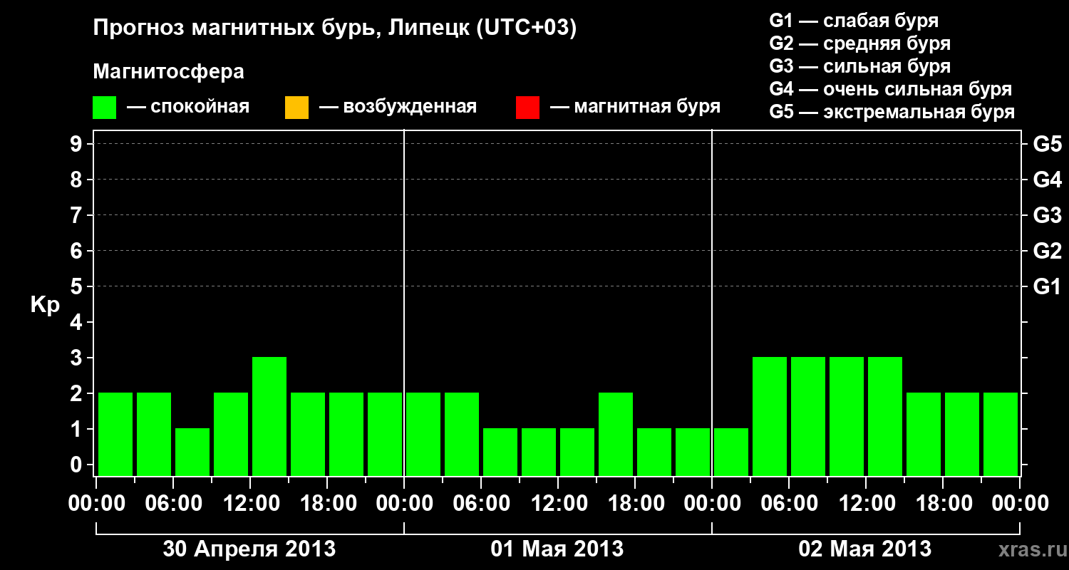 Прогноз магнитных бурь в Липецке на 30 апреля 2013 года