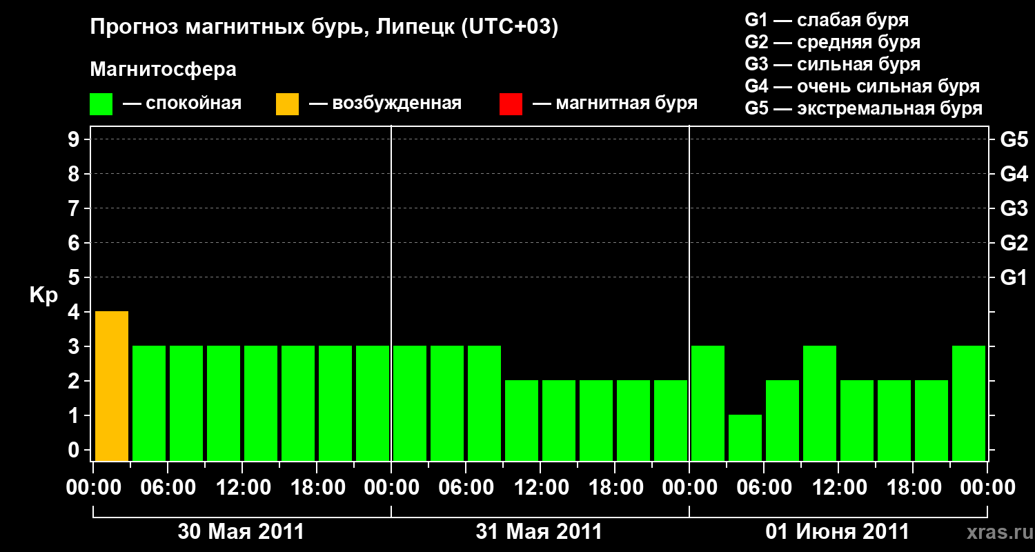 Прогноз магнитных бурь в Липецке — 30 мая 2011 года