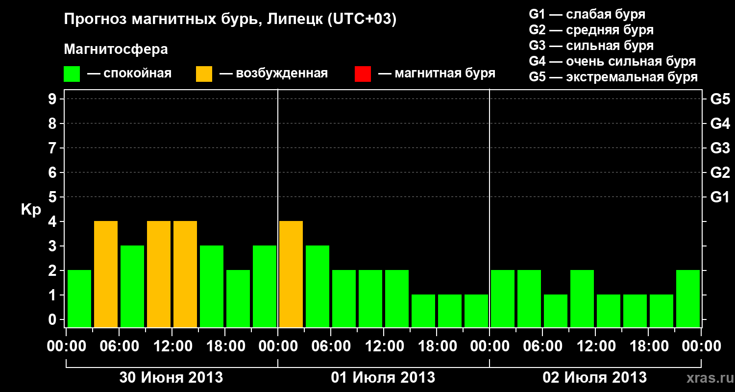 Прогноз магнитных бурь в Липецке — 30 июня 2013 года