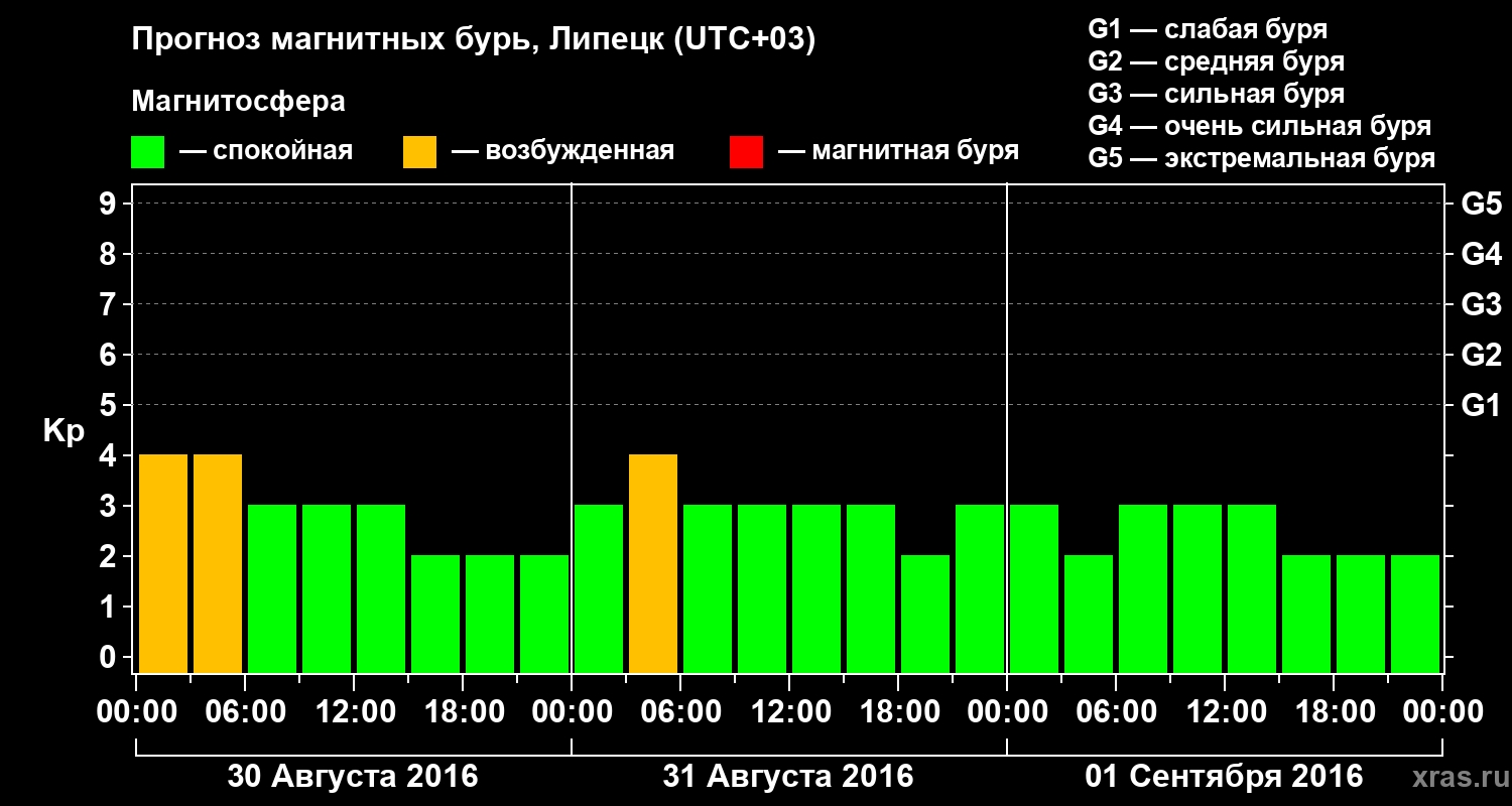 Прогноз магнитных бурь в Липецке — 30 августа 2016 года