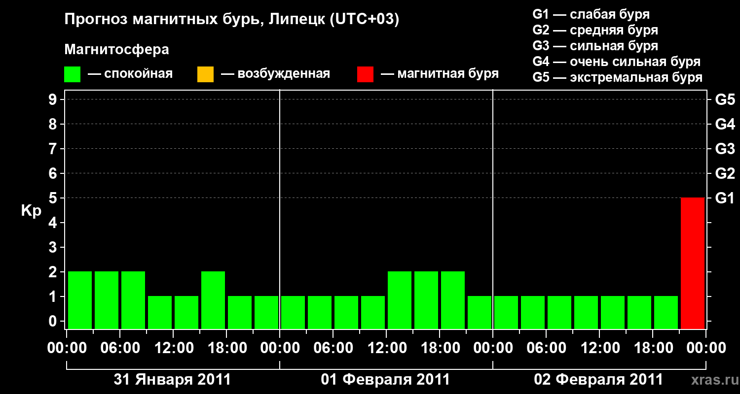 Прогноз магнитных бурь в Липецке — 31 января 2011 года