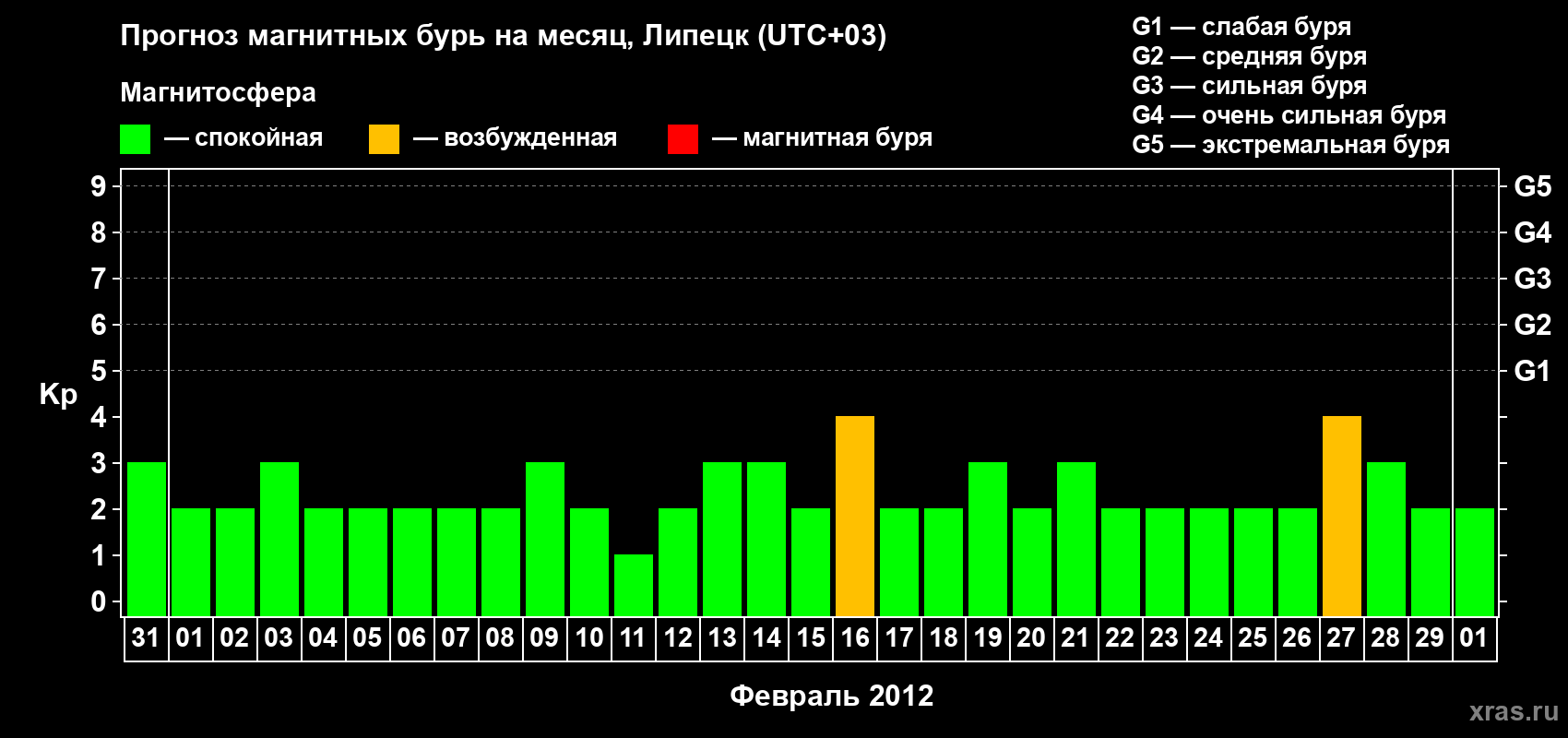 Прогноз магнитных бурь в Липецке — 31 января 2012 года
