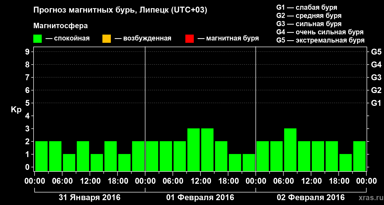 Прогноз магнитных бурь в Липецке — 31 января 2016 года