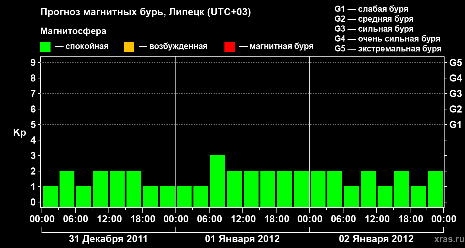 Прогноз магнитных бурь в Липецке на 31 декабря 2011 года