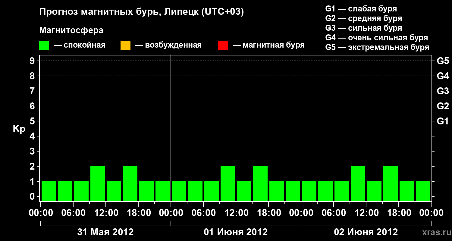 Прогноз магнитных бурь в Липецке — 31 мая 2012 года