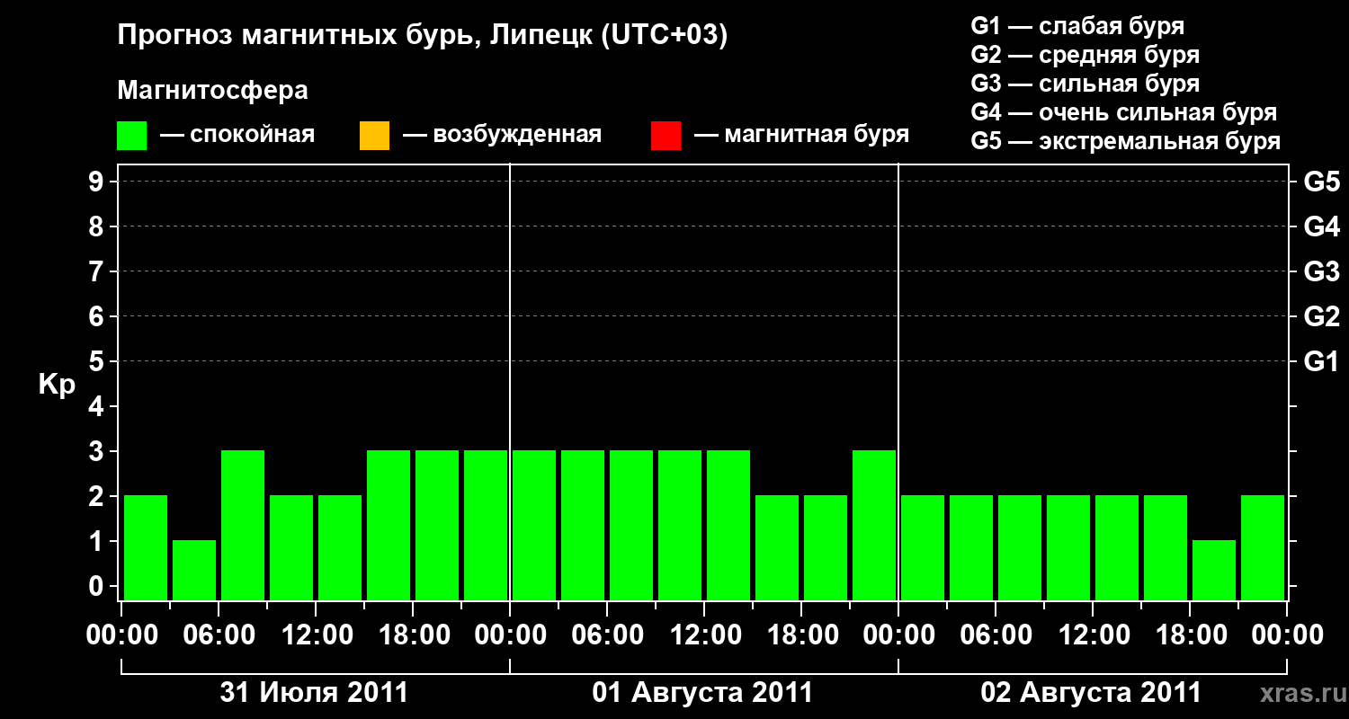 Прогноз магнитных бурь в Липецке — 31 июля 2011 года