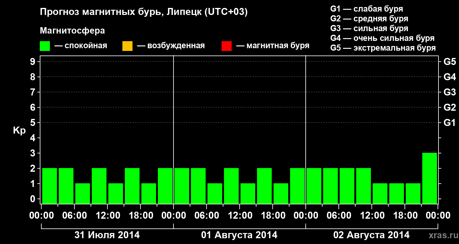 Прогноз магнитных бурь в Липецке — 31 июля 2014 года