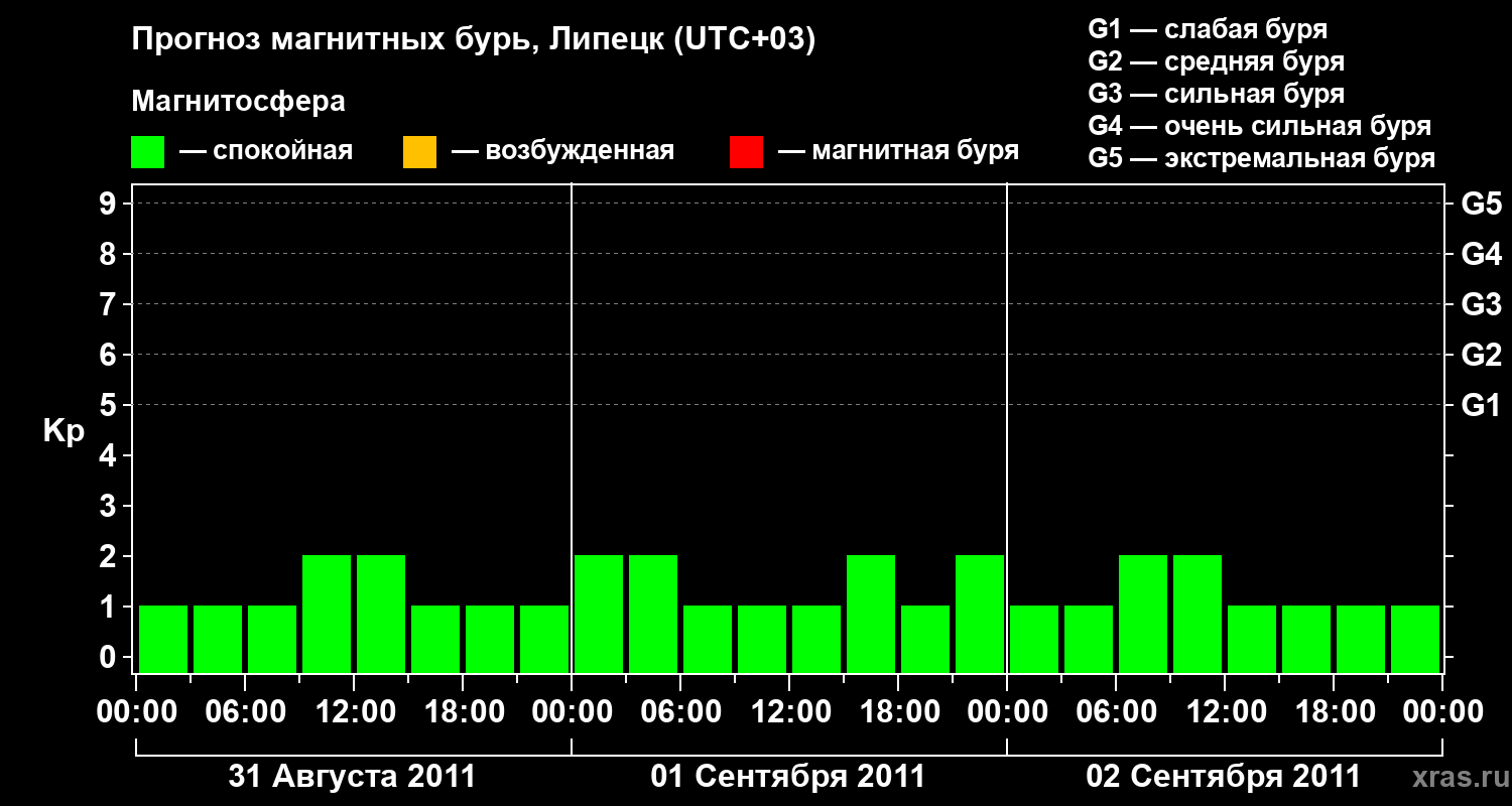 Прогноз магнитных бурь в Липецке — 31 августа 2011 года