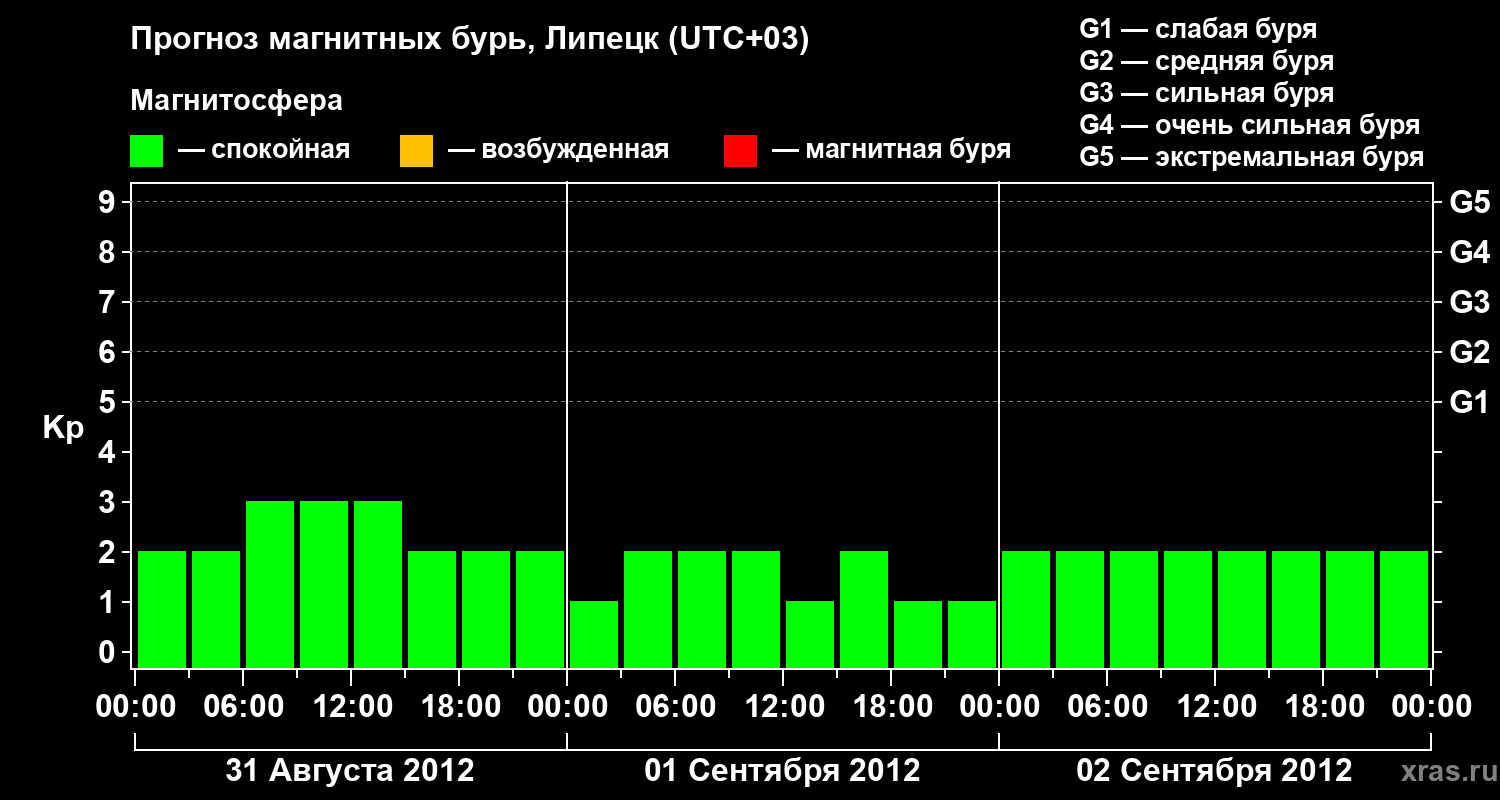 Прогноз магнитных бурь в Липецке на 31 августа 2012 года