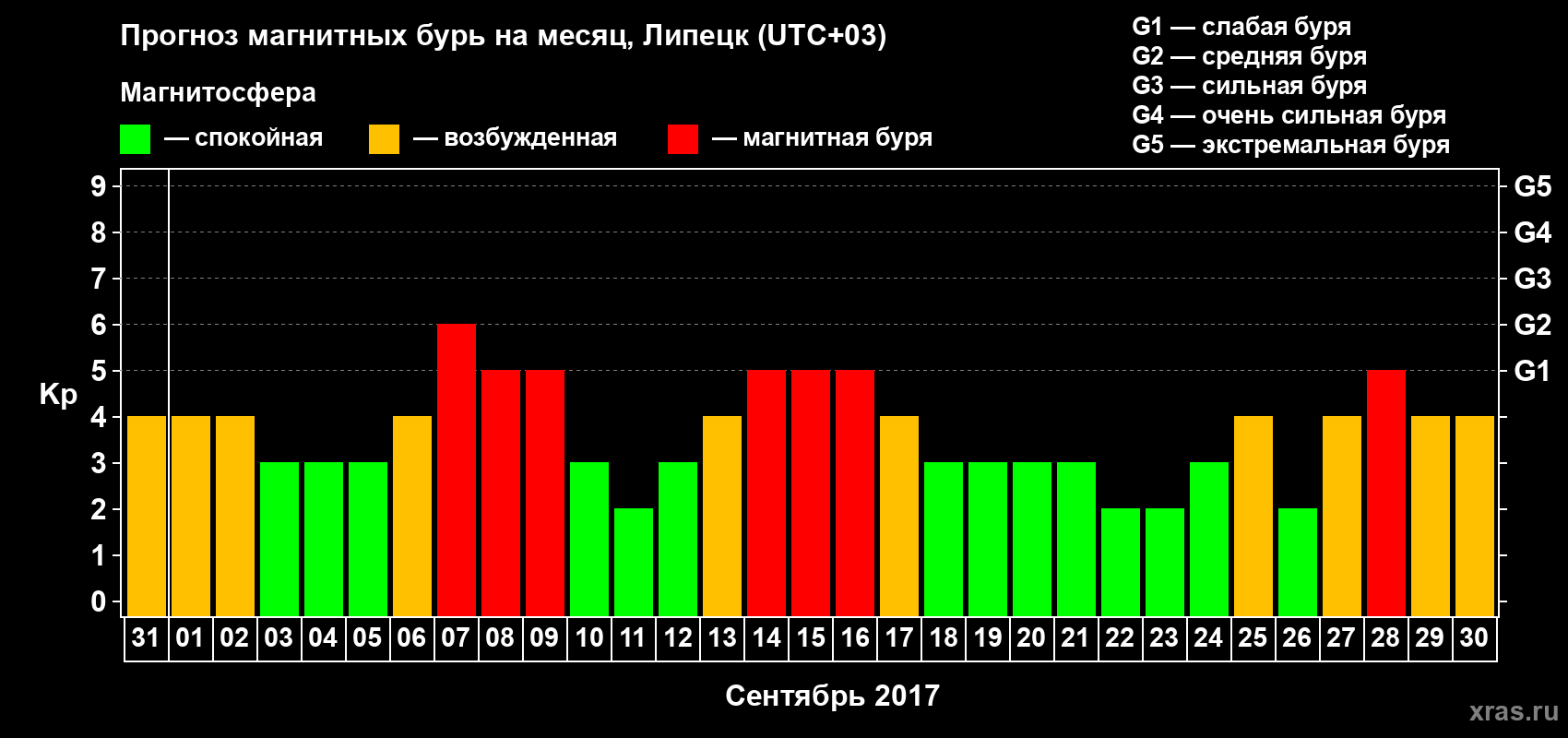 Прогноз магнитных бурь в Липецке — 31 августа 2017 года