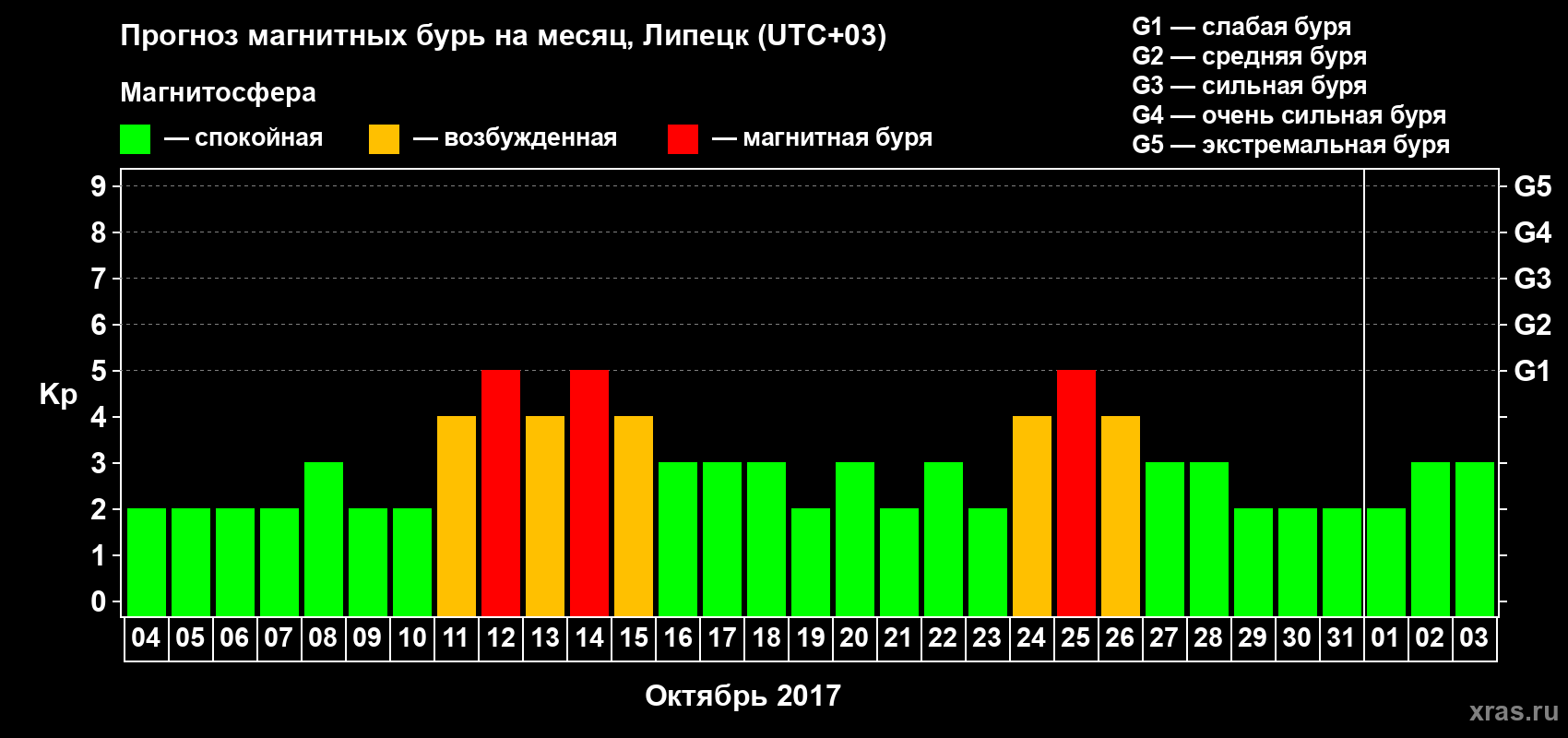 Прогноз магнитных бурь в Липецке — 4 октября 2017 года