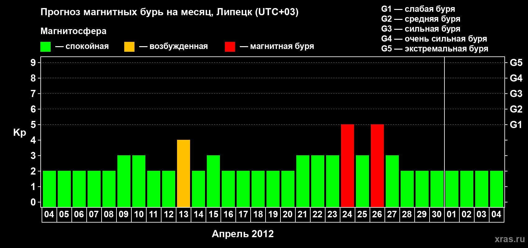 Прогноз магнитных бурь в Липецке — 4 апреля 2012 года