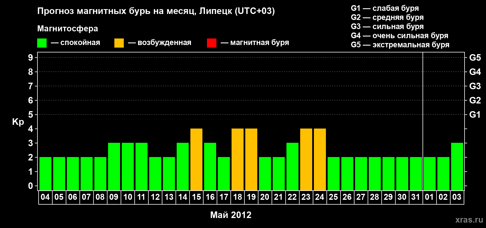 Прогноз магнитных бурь в Липецке — 4 мая 2012 года