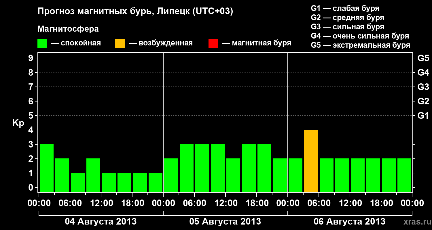 Прогноз магнитных бурь в Липецке на 4 августа 2013 года