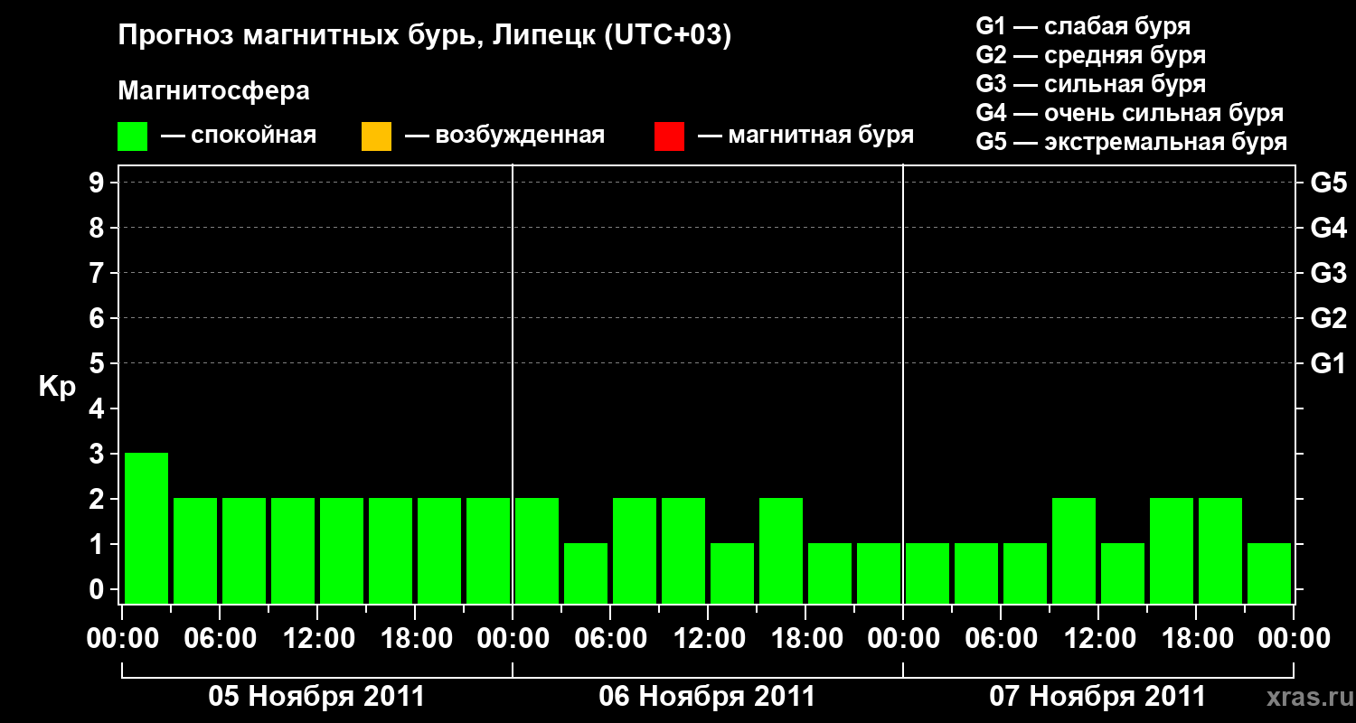 Прогноз магнитных бурь в Липецке — 5 ноября 2011 года