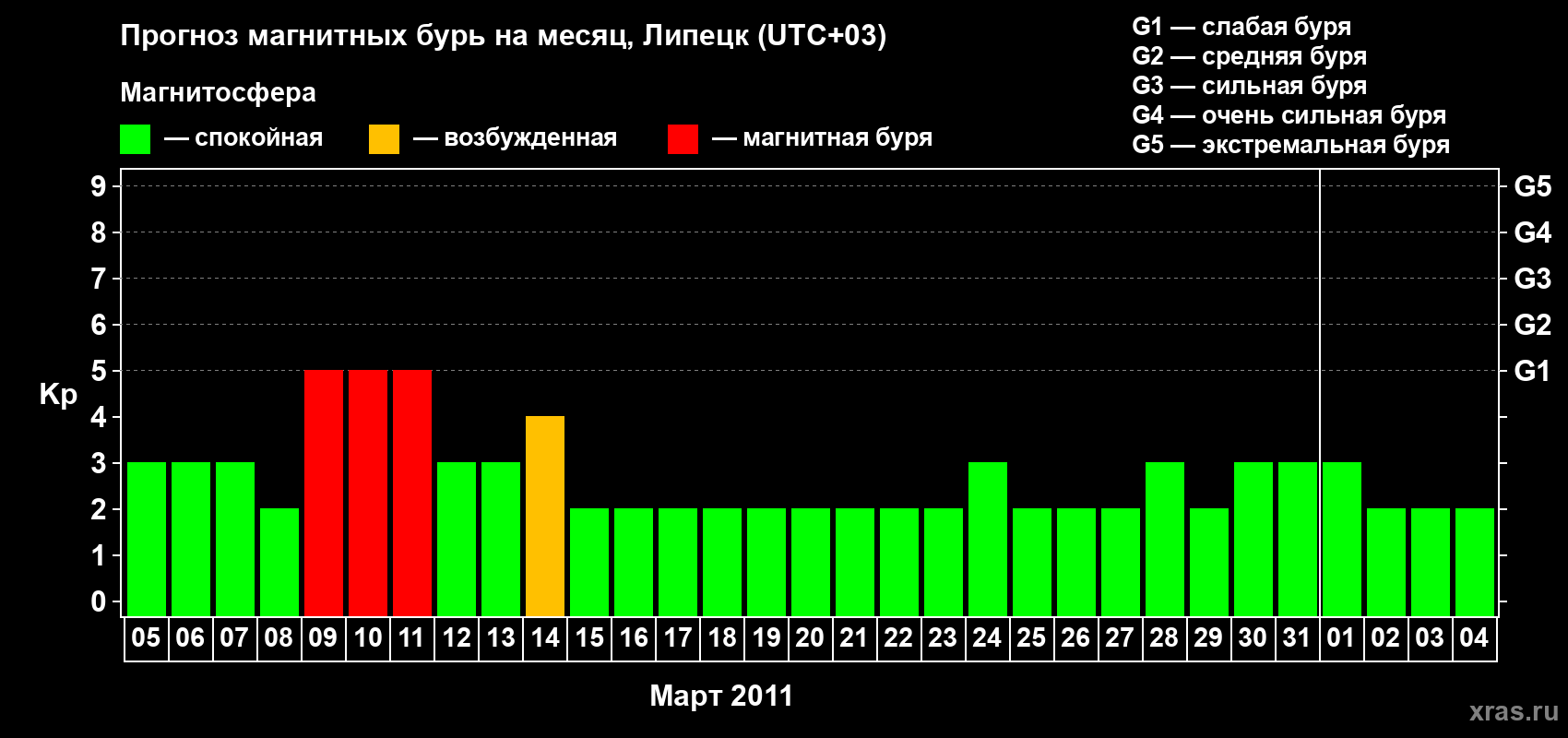 Прогноз магнитных бурь в Липецке — 5 марта 2011 года