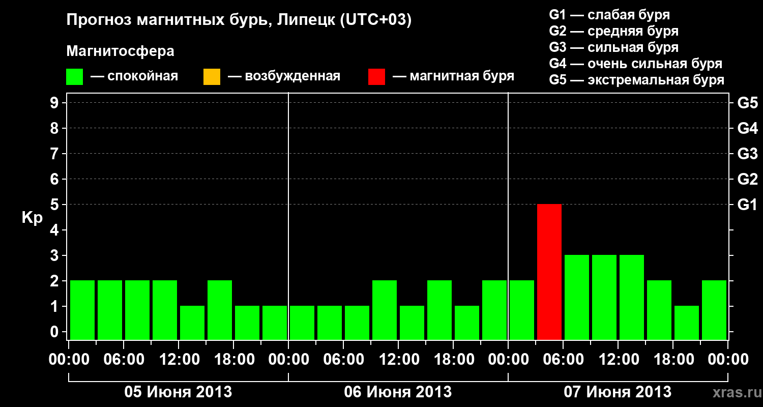 Прогноз магнитных бурь в Липецке — 5 июня 2013 года